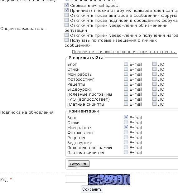 Скрипт добавляет на страницу редактирования данных подписку на обновления разделов по ЛС и E-mail.