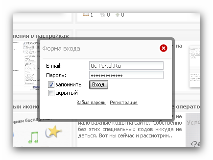 Вход на сайт